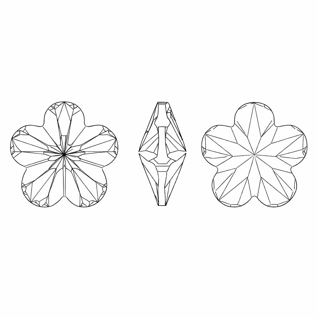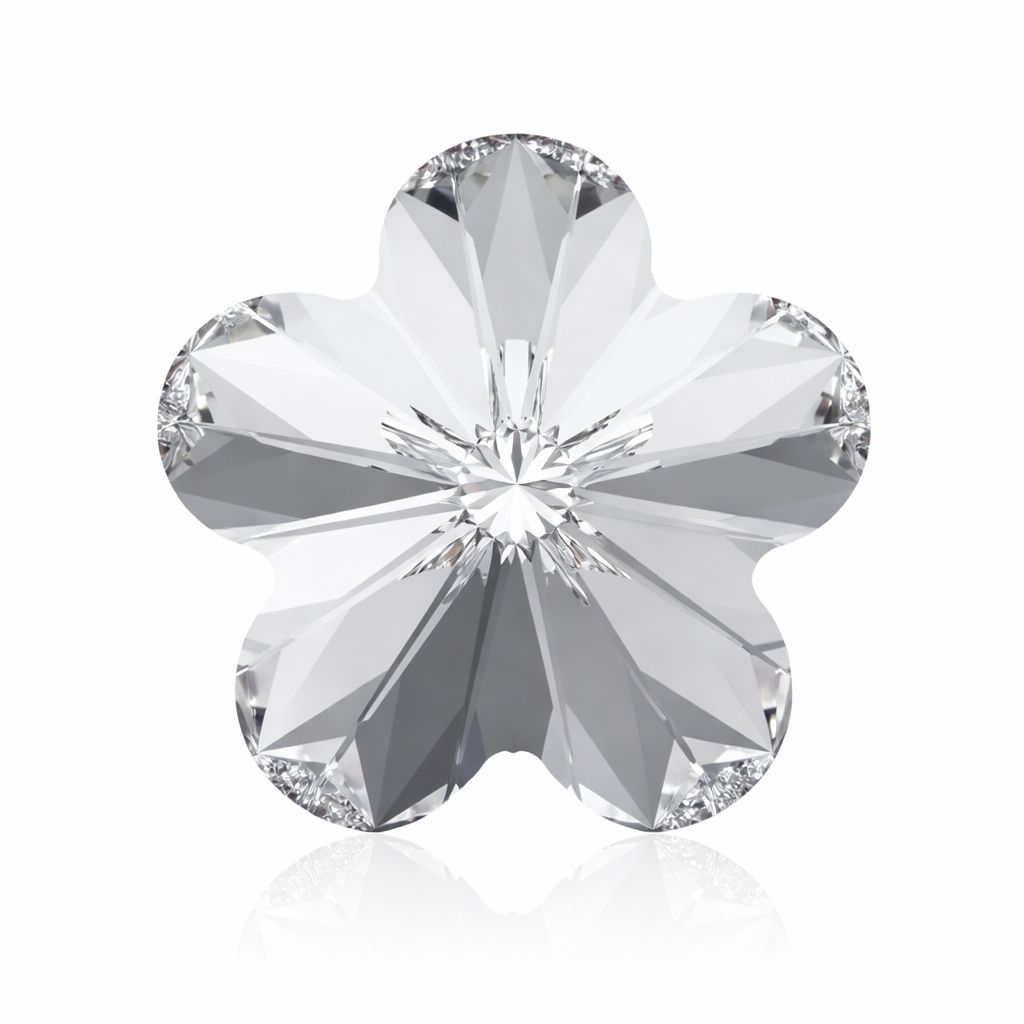 Kameň v tvare kvetu vo farbe Crystal s priemerom 6,0 mm. Vyznačuje sa dekoratívnym viaclupeňovým tvarom a čírym vzhľadom s intenzívnym leskom. Precízne fazety zvýrazňujú kvetinový tvar a efektne odrážajú svetlo. Vhodný na šperky a kreatívne projekty.