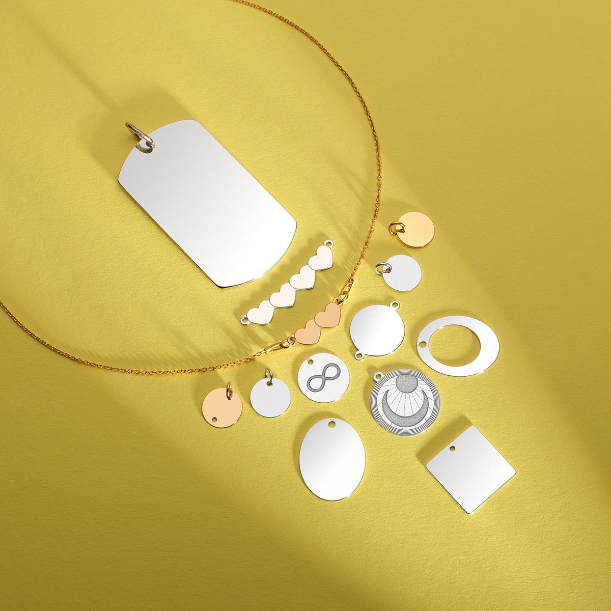 Tento typ prívesku je veľmi obľúbený medzi dizajnérmi minimalistických šperkov, najmä pri tvorbe módnych doplnkov, ako je jemný strieborný náhrdelník alebo náramok typu „celebrytka“. Vďaka upevňovaciemu krúžku je doštička pripravená na jednoduché vloženie do retiazky, šnúrky, remienka alebo iných nosičov.