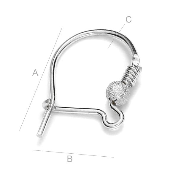 Uzavretý háčik na ucho s guľôčkou a pružinou, strieborný AG 925