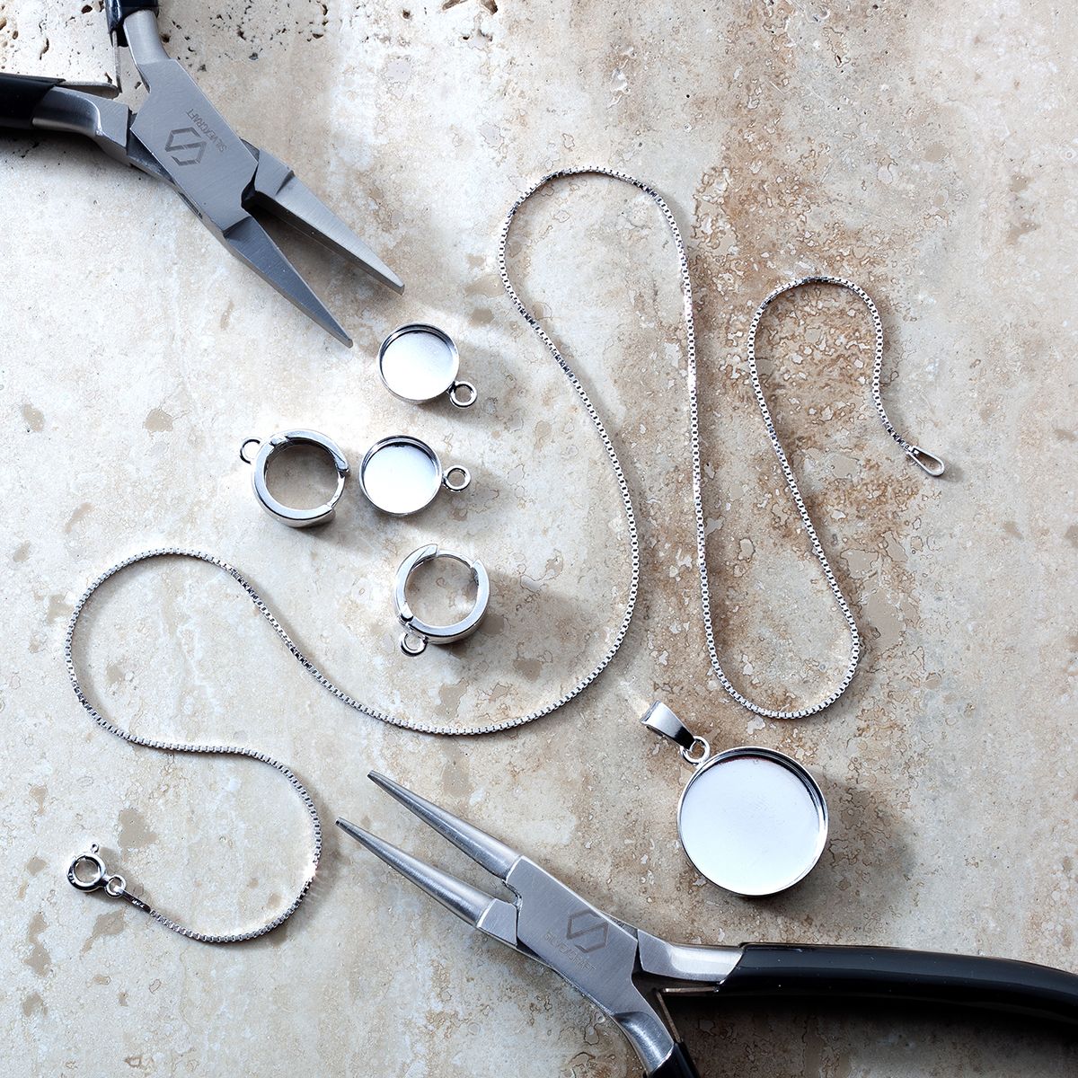 Pred použitím komponentov na výrobu šperkov sa odporúča skontrolovať ich stav, napríklad či nemajú drobné poškodenia, deformácie alebo uvoľnené časti..