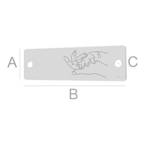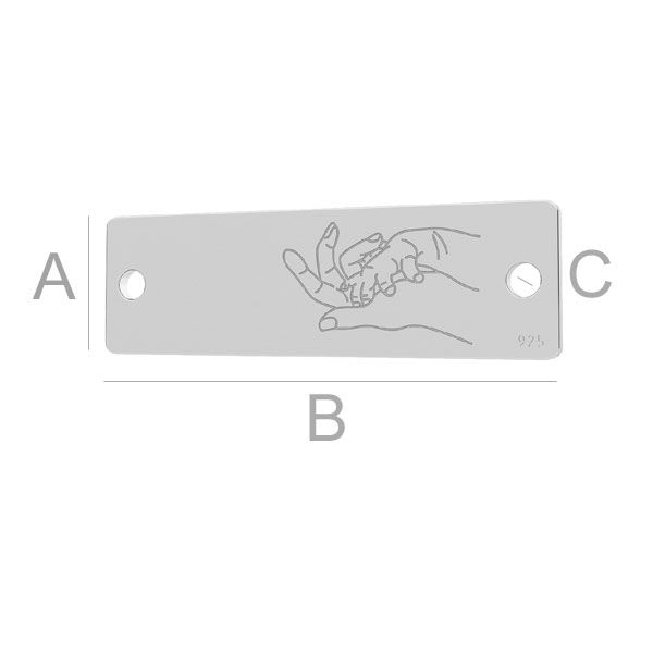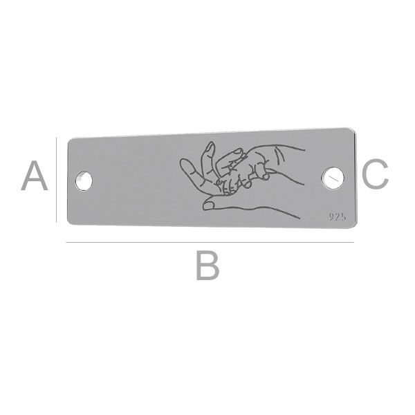 Prívesok konektora - obdĺžniková platnička - ruky matky a dieťaťa, strieborná AG 925
