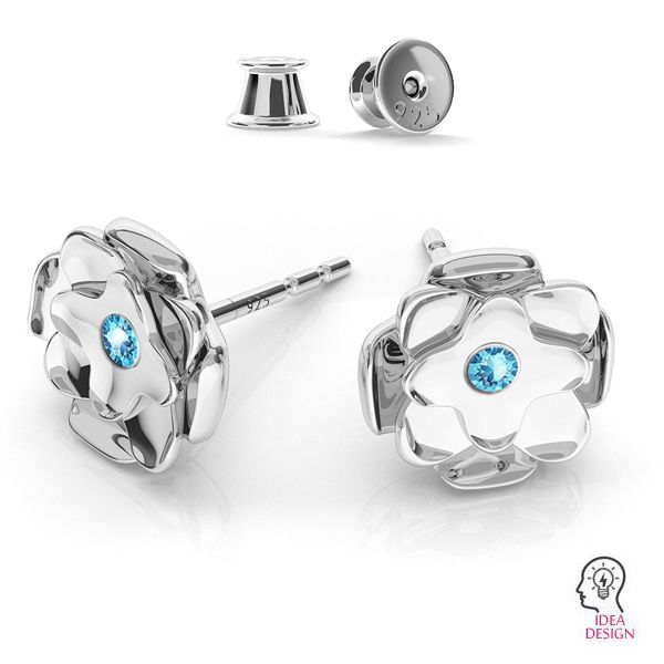 Napichovacia náušnica - ruža - základ na kryštál SW 1088 PP 16, striebro AG 925