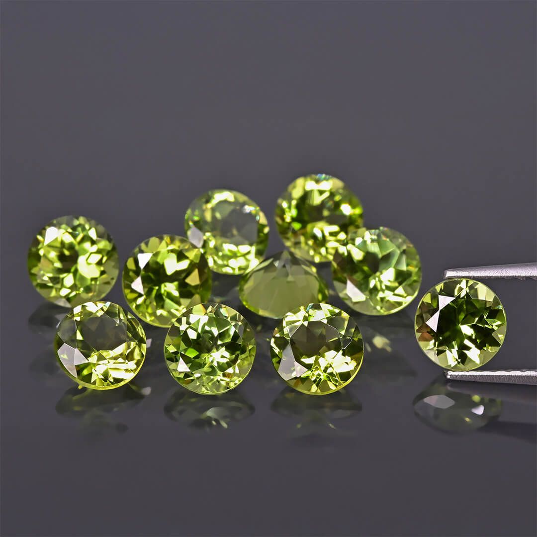 Peridot v kužeľovom bruse s veľkosťou 6 mm. Prírodný kameň so živou zelenou farbou a fazetovaním. Skvelý pre svieže šperky.