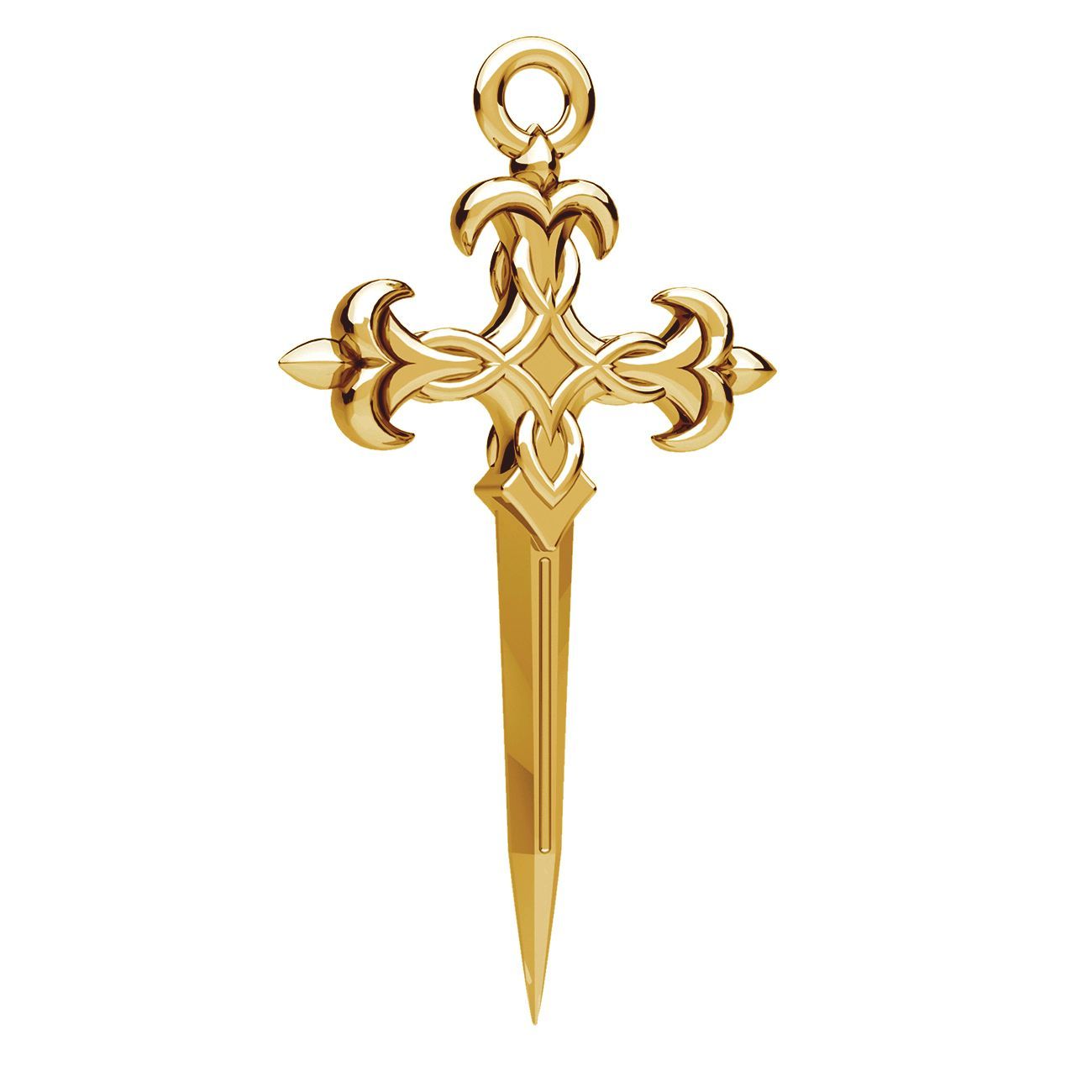 Prívesok kríž dýka je výrazný dekoratívny motív so symbolickým charakterom. Mosadzný odliatok spája tvar kríža, meča a dýky, doplnený o detail ľalie. Hlboká forma zvýrazňuje vzor. Určený najmä na náhrdelníky a náušnice.